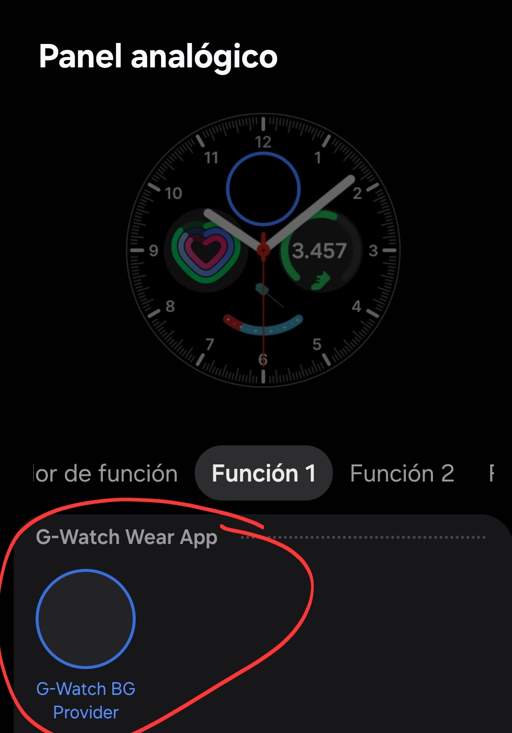 En las esferas de Samsung te deja definir las funciones, y ahí te sale G-Watch.